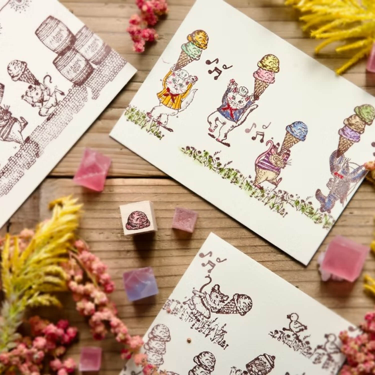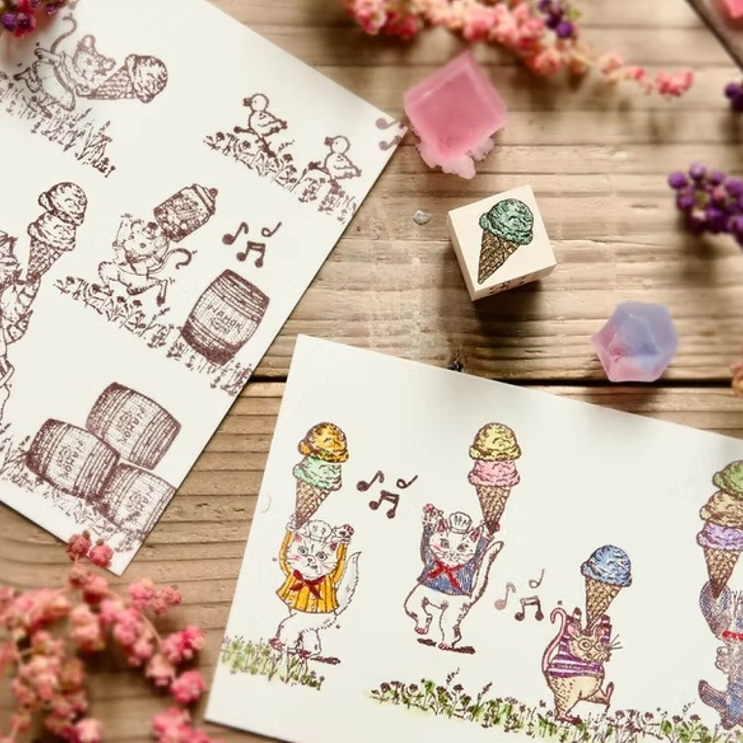 Akamegane Stamp Set - Ice Cream and Additional Scoop (2 Pieces)