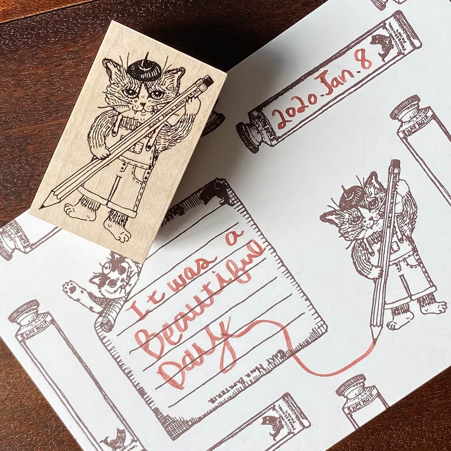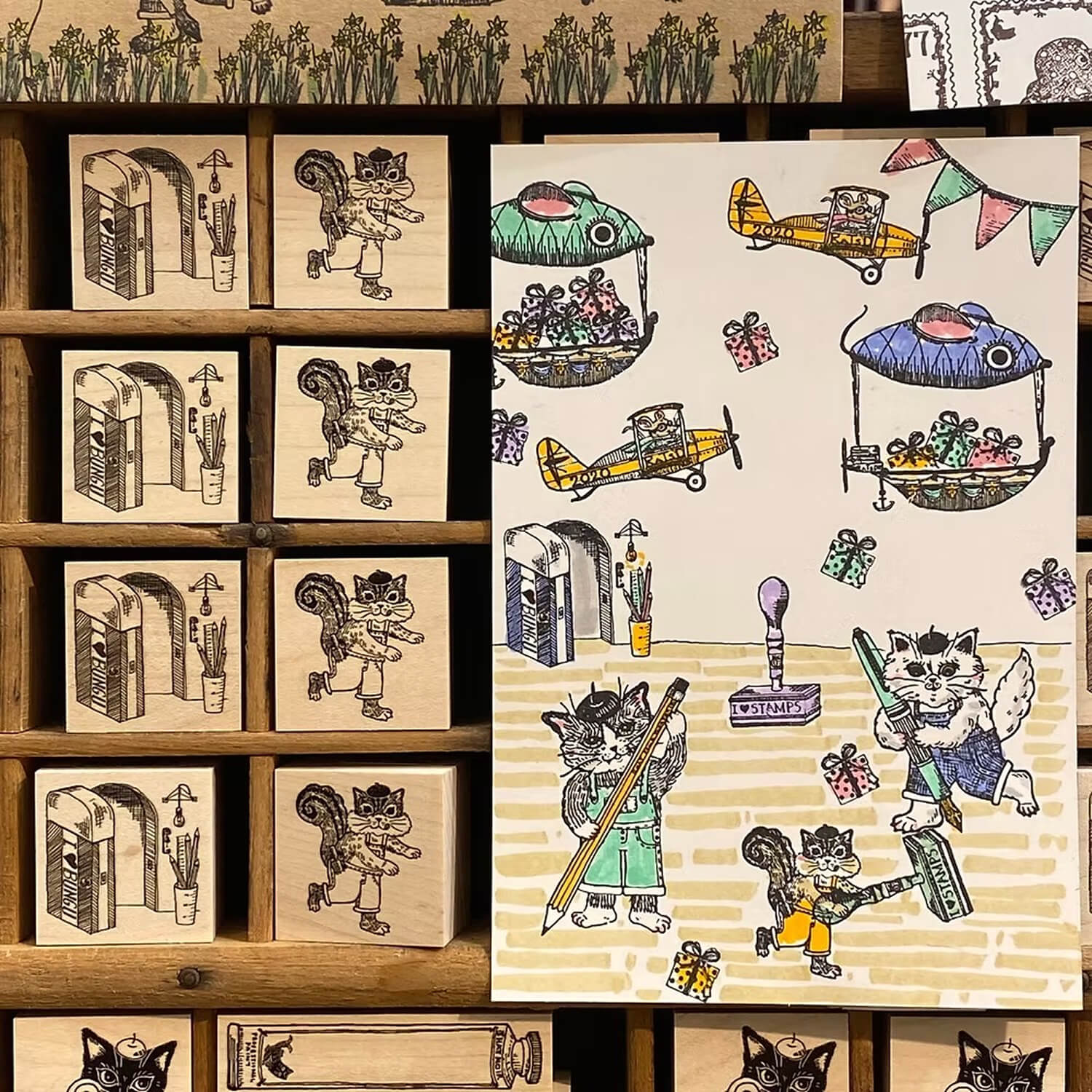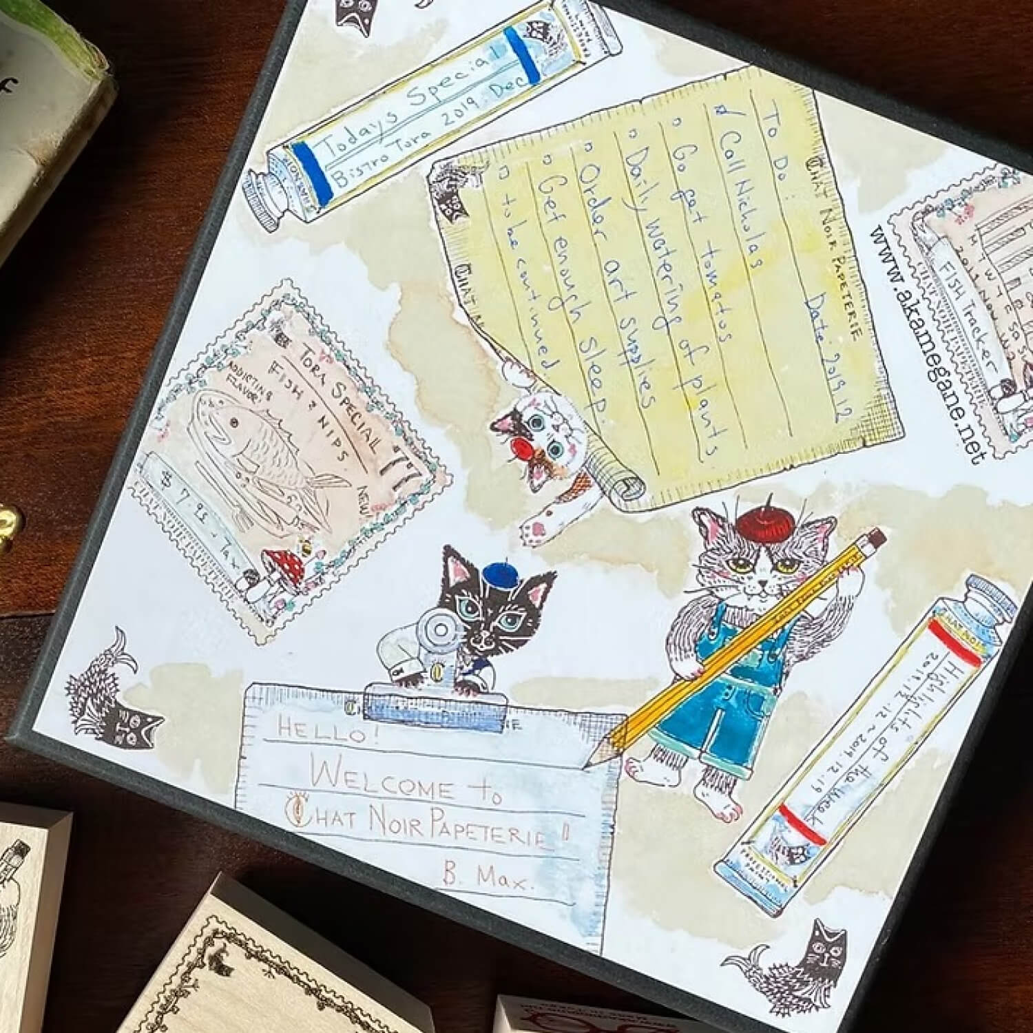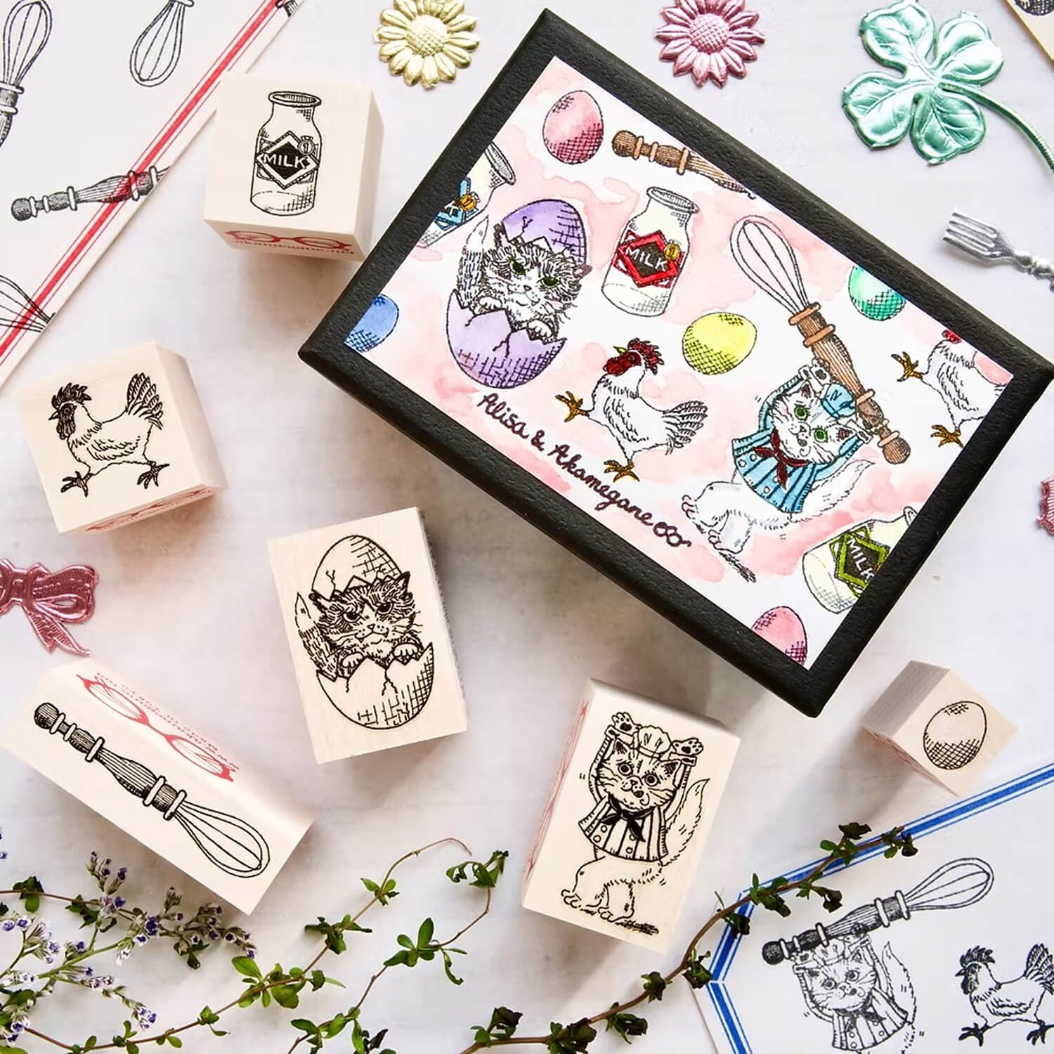 Keiko Shibata × Mizushima Jizai Boxed Stamp Set - Cats and Wigs