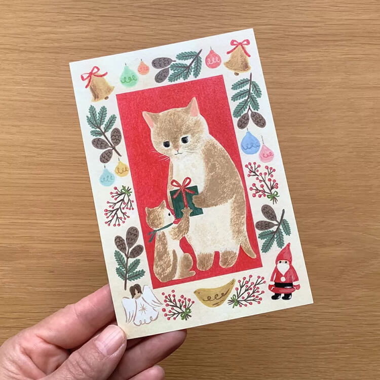 4 Legs Picture Book Cat Postcard – Parent and Kitten Christmas
