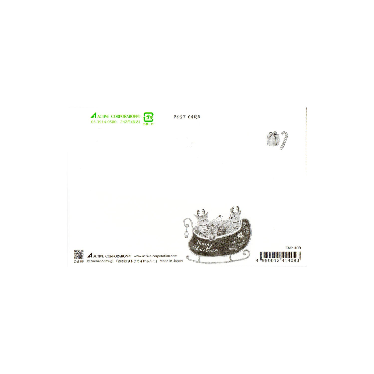 Tocoro Comugi Christmas Postcard – Sleigh Cat