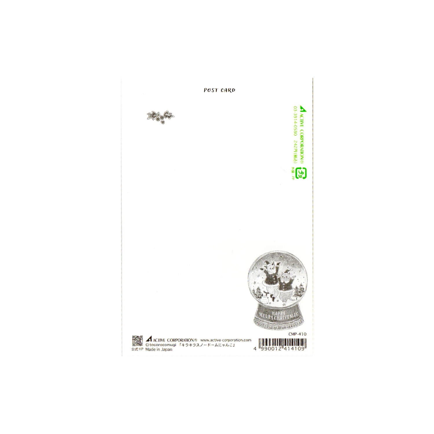 Tocoro Comugi Christmas Postcard – Snow Globe Cat